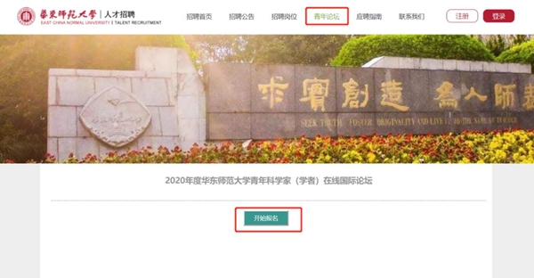 (1)校外申请人输入:www.jobs.ecnu.edu.cn,选择“青年论坛”板块,进行青年论坛在线报名。