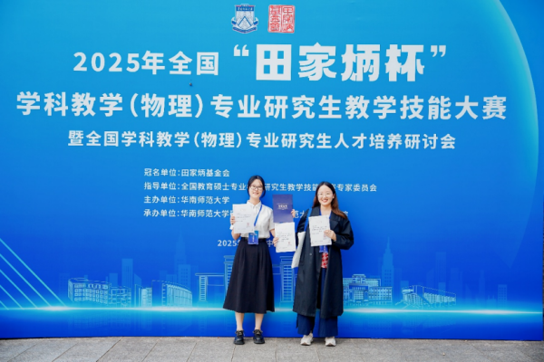 2025年11月6日至9日,全国“田家炳杯”全日制教育硕士专业学位学科教学(物理)专业研究生教学技能大赛决赛暨全国学科教学(物理)专业研究生人才培养研讨会于华南师范大学圆满落幕。Bsports官网2024级教育硕士杭雪姝、李赵唯凭借出色的专业功底、精湛的教学技能与良好的教师素养脱颖而出,分别荣获全国一等奖、全国二等奖,指导教师陈刚荣获“优秀指导教师”称号。