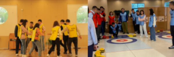 活动首日,老师们来到风景秀丽的户外拓展基地。在专业教练的带领下,大家首先进行了一系列轻松有趣的热身游戏。“破冰启航”环节,简单的互动小游戏迅速打破了拘谨,现场欢声笑语不断,老师们的热情被充分调动起来。随后备受期待的“旱地冰壶”项目正式开始,作为一项集策略与技巧于一体的绅士运动,旱地冰壶虽没有冰面的湿滑,却同样考验着大家的精准度、判断力和团队战术配合。老师们分成三个小组,在教练的指导下,从握壶、瞄准到投掷,一丝不苟地练习着每一个动作。比赛过程中,大家时而屏息凝神思考战术,时而为队友的精彩表现欢呼喝彩。小小的冰壶在赛道上滑行,不仅碰撞出智慧的火花,更凝聚了团队的力量,展现了教职工积极向上、团结协作的精神风貌。