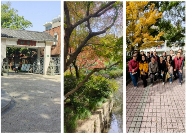 红园,位于闵行区江川路354号,南临江川路,东邻红园路,占地面积4.2万平方米。1960年建成开放,1962年改为现名,是上海市闵行区第一座公园。2006年,红园被上海市文明办和上海市绿化局评为“2005年度上海市文明公园”;2017年,红园被上海市绿化和市容管理局评为“上海市三星级公园”。红园布局协调自然,曲水、假山、亭台都精心设计,曲径通幽、临水遍种罗汉松、棕榈等园林名木。初冬时节,红枫、乌桕却正开得绚烂,实在让大家心情愉悦。作为闵行的第一座公园,为闵行人民的健康文明生活提供了平台,留下了许多历史印记,大家在园里流连忘返,在“红园党群服务中心”合影留念。