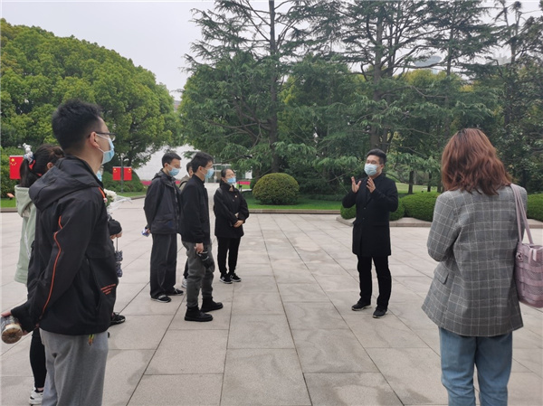 江风浩荡,云天低垂,在黄浦江畔的上海市人民英雄纪念塔,学院团委书记、辅导员王元力带领学生代表开展现场教学。同学们面向纪念塔默哀,敬献鲜花、缅怀英烈。学生党员代表在纪念塔前重温入党誓词,王元力结合中国共产党新民主主义革命史,以“中共一大召开”“上海工人三次武装起义”等历史事件为引,讲述了上海在中国共产党创立初期、大革命时期、抗日战争时期、解放战争时期发挥的重要历史作用和上海人民对革命事业作出的重要贡献。