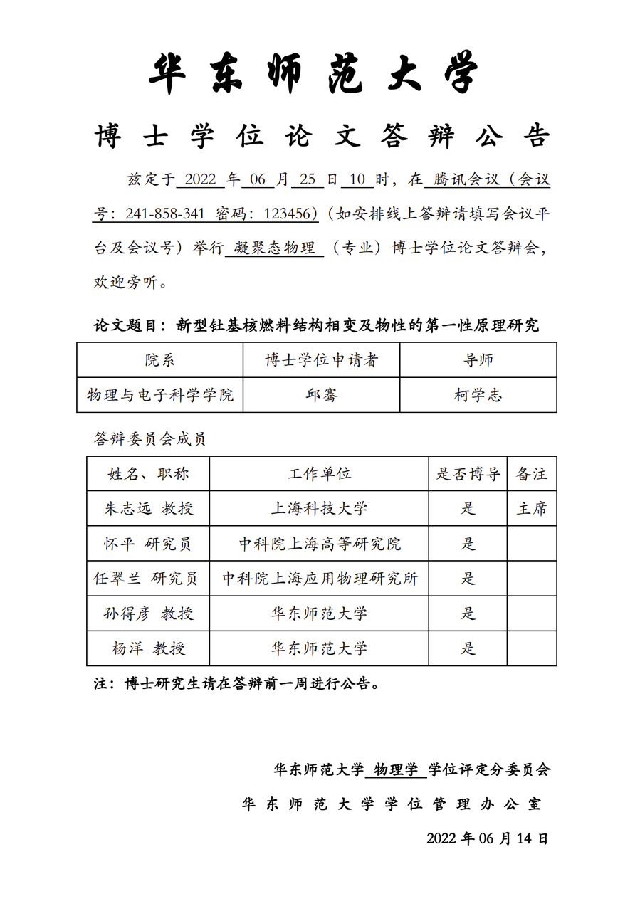 Bsports必一体育 博士学位论文答辩公告-邱骞