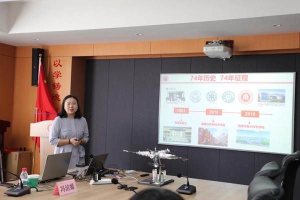 陈丽清详细介绍了学院课程思政建设成果。例如,6个教育部优秀案例、26个在线视频及课程入选全国平台,《物理学史与物理学方法论》课程被“新华网-新华思政”全国高校课程思政教学资源服务平台收录等。